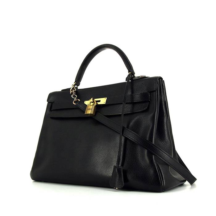Borsa Hermes Kelly 32 cm in pelle Fjord nera Ref Collector Square: 34 25 70