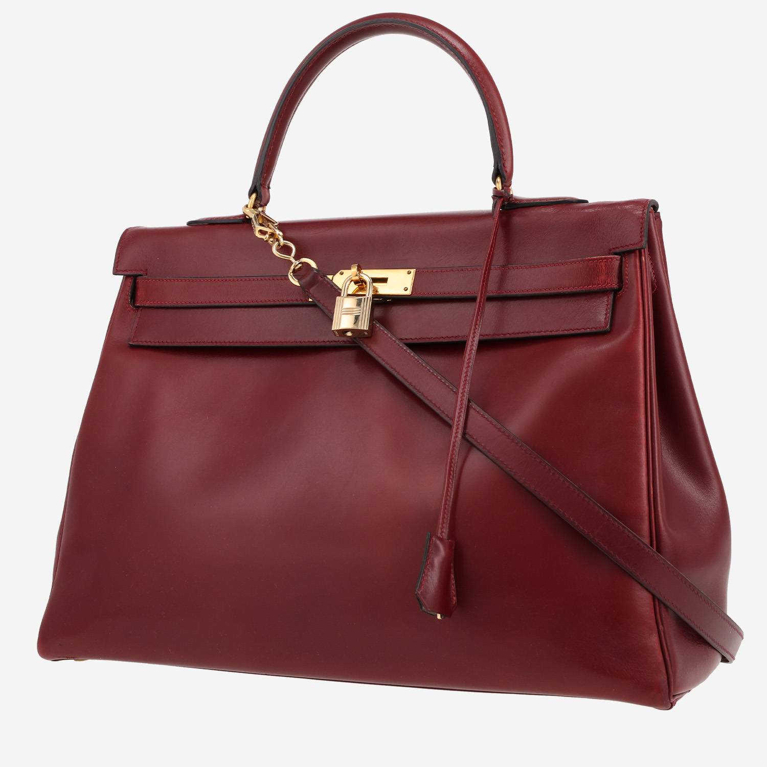 Elegante borsa Hermès Kelly 35 cm in pelle rosso H, inserti in metallo dorato, manico semplice in pelle box rosso H, maniglia non firmata removibile in pelle box rosso H da portare a mano o in spalla.