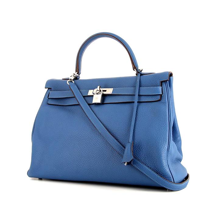 Borsa Hermes Kelly 35 cm in pelle togo blu Ref Collector Square: 36 94 89