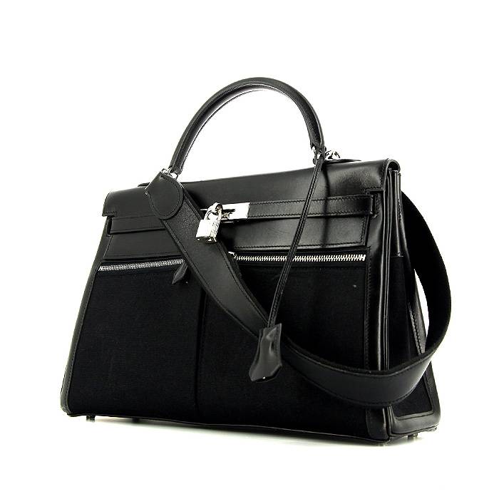 Borsa Hermes Kelly Lakis in pelle box nera e tela nera Ref Collector Square: 33 04 31