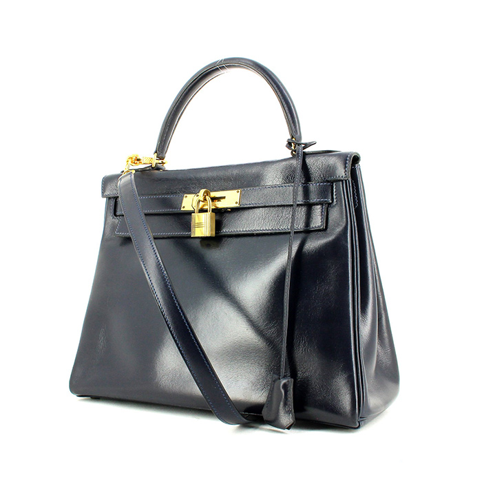 Borsa Kelly 28 cm in pelle box blu marino Ref Collector Square: 32 80 11