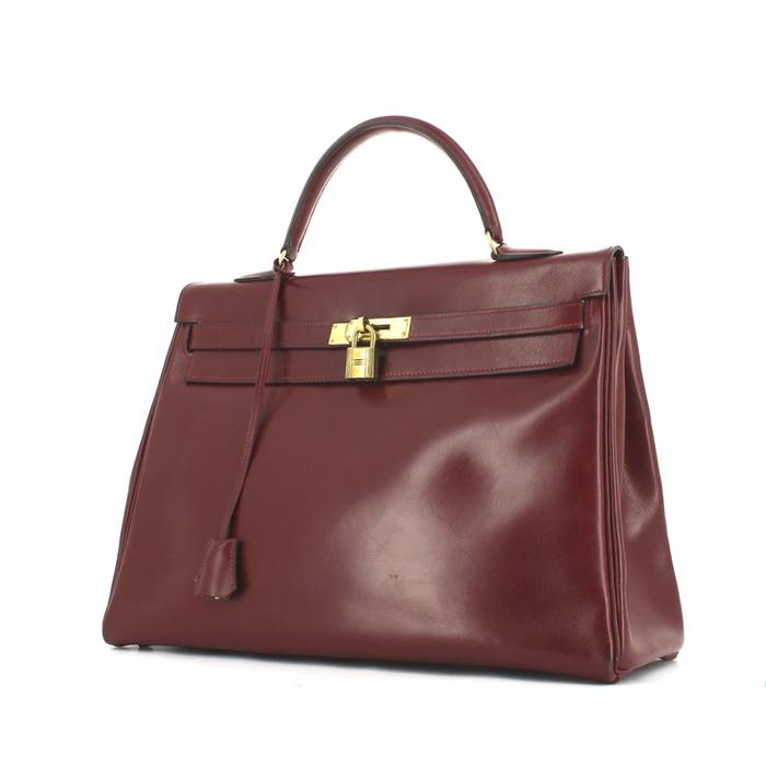Borsa Kelly 35 cm in pelle box bordeaux Ref Collector Square: 31 89 29