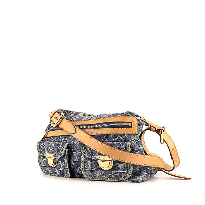 Borsa a tracolla Louis Vuitton modello piccolo in tela denim blu e pelle naturale Ref Collector Square: 34 00 38