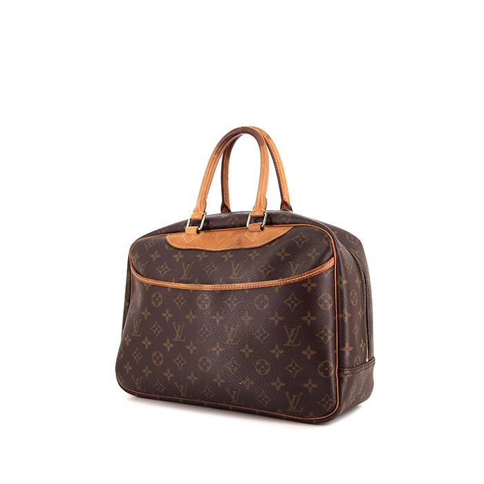 Famosa borsa Louis Vuitton Deauville in tela monogram cerata e pelle naturale, inserti in metallo dorato, doppio manico in pelle naturale da portare a mano.