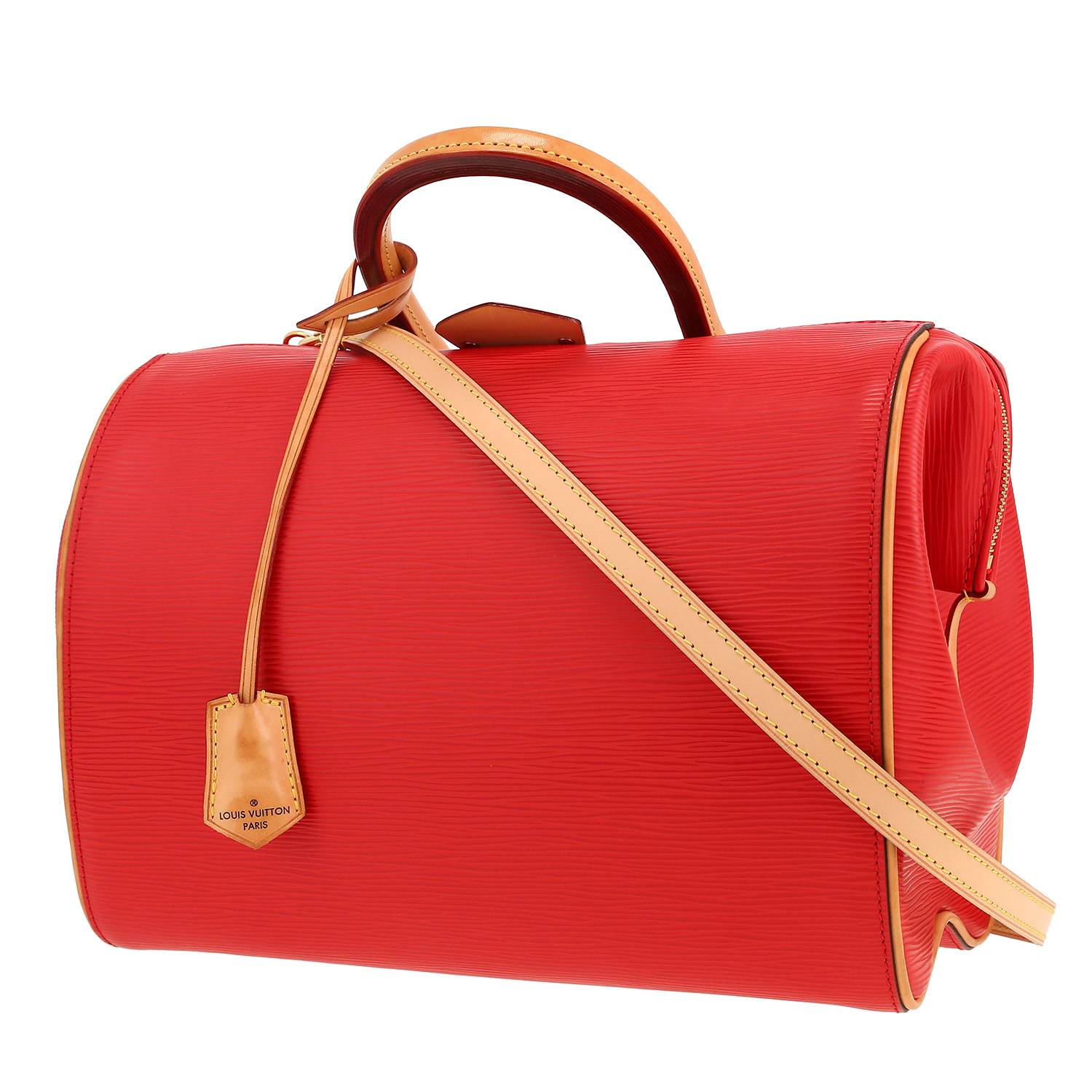 Graziosa borsa Louis Vuitton Doc in pelle Epi rosso e pelle naturale, inserti in metallo dorato, manico semplice in pelle naturale, tracolla removibile in pelle naturale da portare a mano, in spalla o a tracolla.