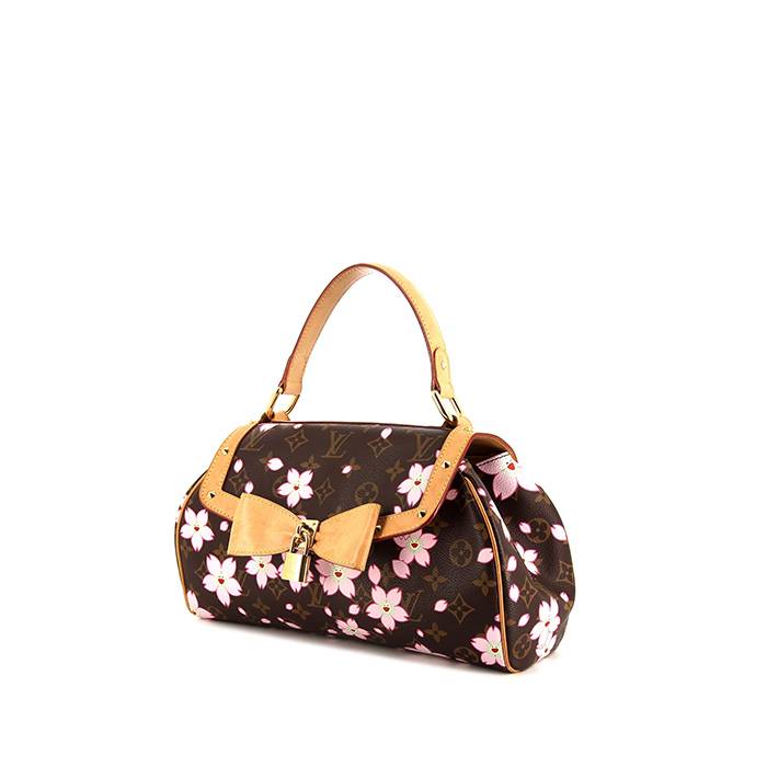 Bellissima borsa Louis Vuitton Louis Vuitton Editions Limitées in tela monogram marrone con decoro floreale e pelle naturale, inserti in metallo dorato, manico semplice in pelle naturale da portare a mano.