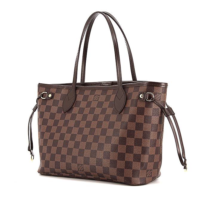 Shopping bag Louis Vuitton Neverfull modello piccolo in tela a scacchi ebana e pelle marrone Ref Collector Square: 33 64 65