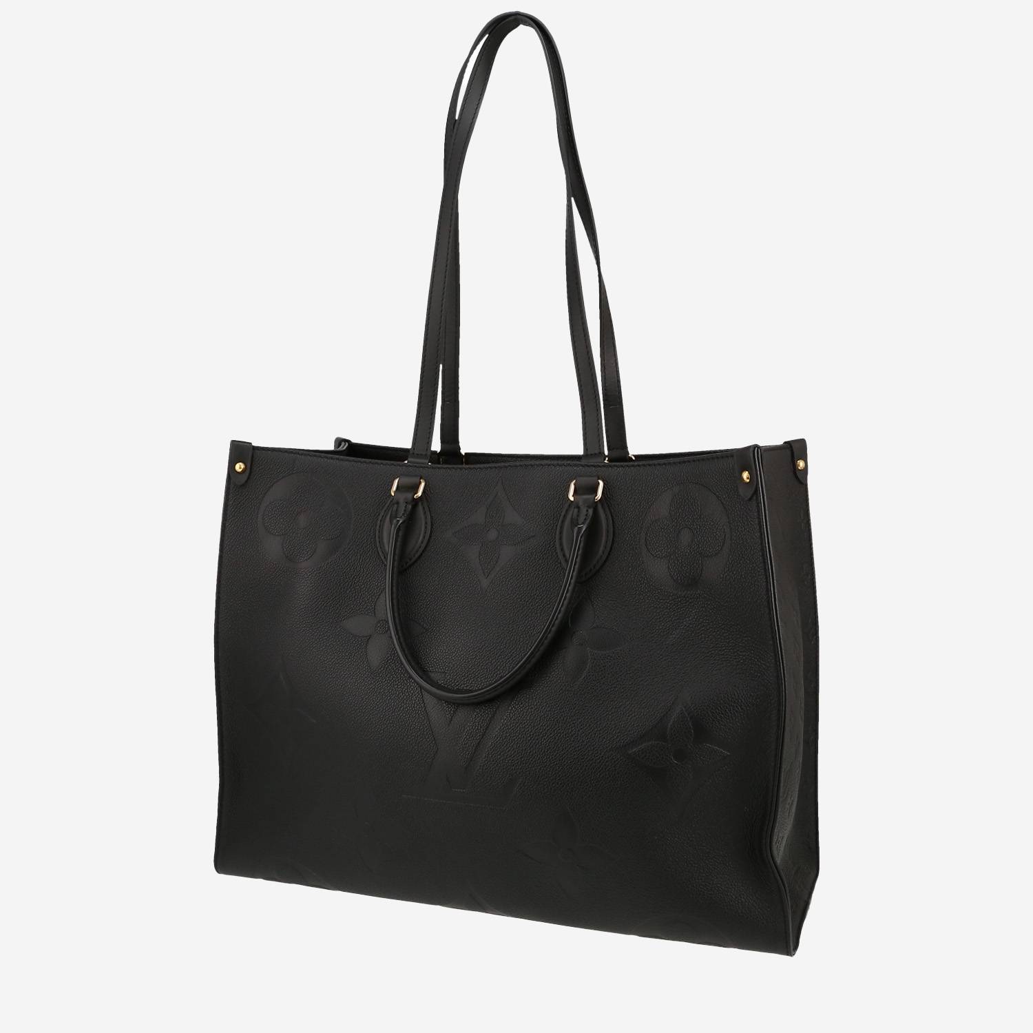 Splendida shopping bag Louis Vuitton Onthego modello grande in pelle monogram con stampa nero, inserti in metallo dorato, doppio manico rotondo in pelle nera, doppia tracolla in pelle nera da portare a mano o in spalla.