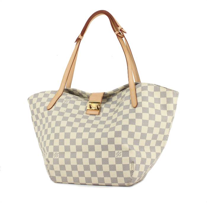 Shopping bag Louis Vuitton in tela a scacchi e pelle naturale Ref Collector Square: 32 14 80