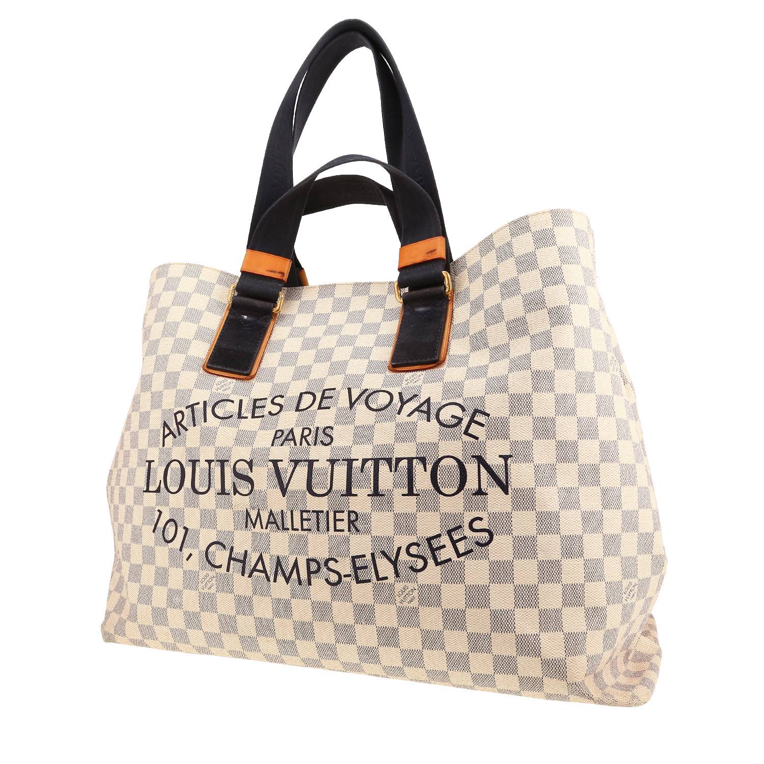 Shopping bag Louis Vuitton modello grande in tela a scacchi azzurro Ref Collector Square: 41 97 55