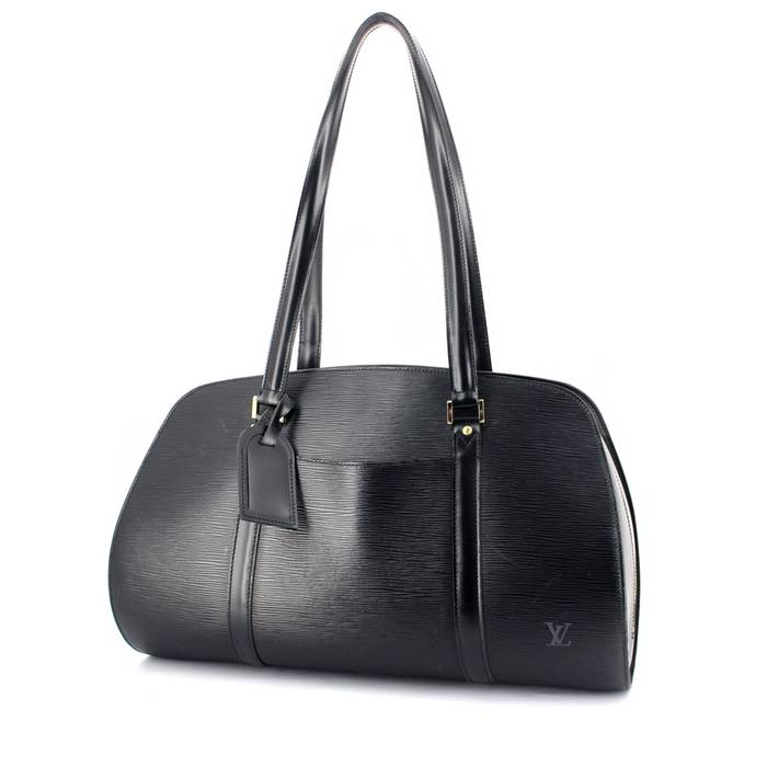 Pratica borsa weekend Louis Vuitton Soufflot in pelle Epi nera, inserti in metallo dorato, doppia tracolla in pelle nera da portare in spalla.