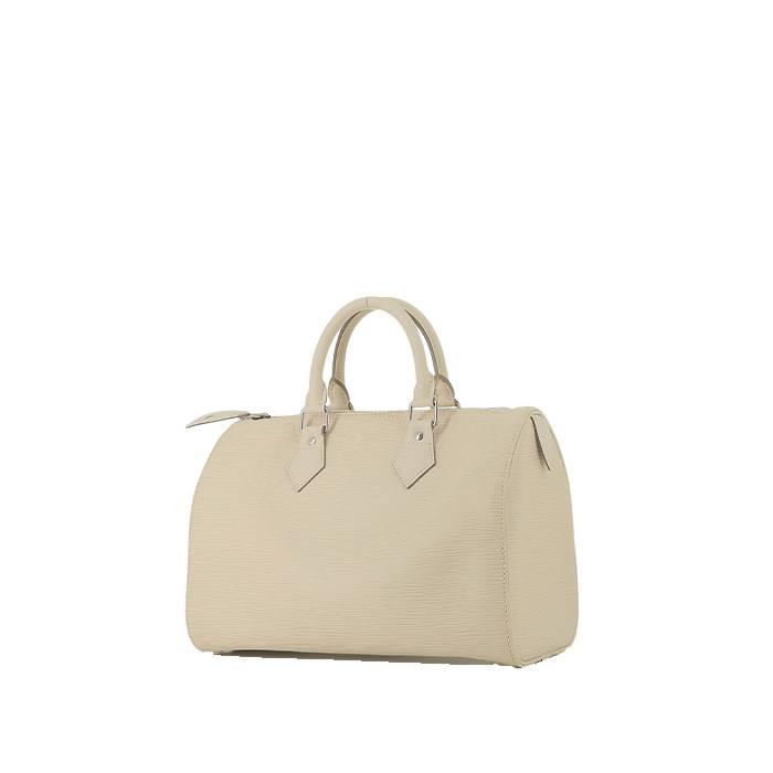 Bella e rara borsa Louis Vuitton Speedy 25 in pelle Epi beige, inserti in metallo argentato, doppio manico in pelle beige da portare a mano.