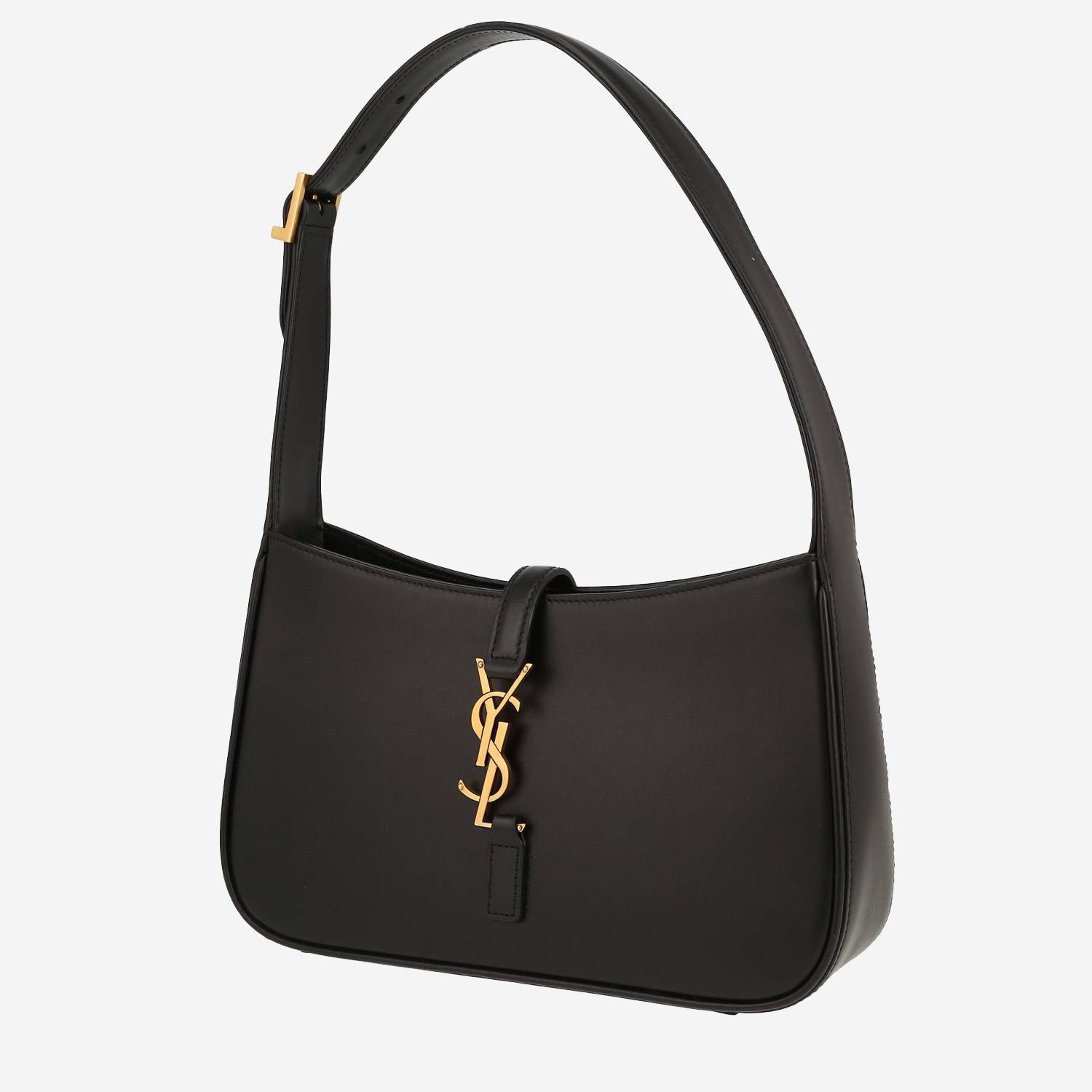 Incantevole borsa Saint Laurent 5 à 7 in pelle nero, inserti in metallo dorato, tracolla in pelle nera da portare a mano o in spalla.