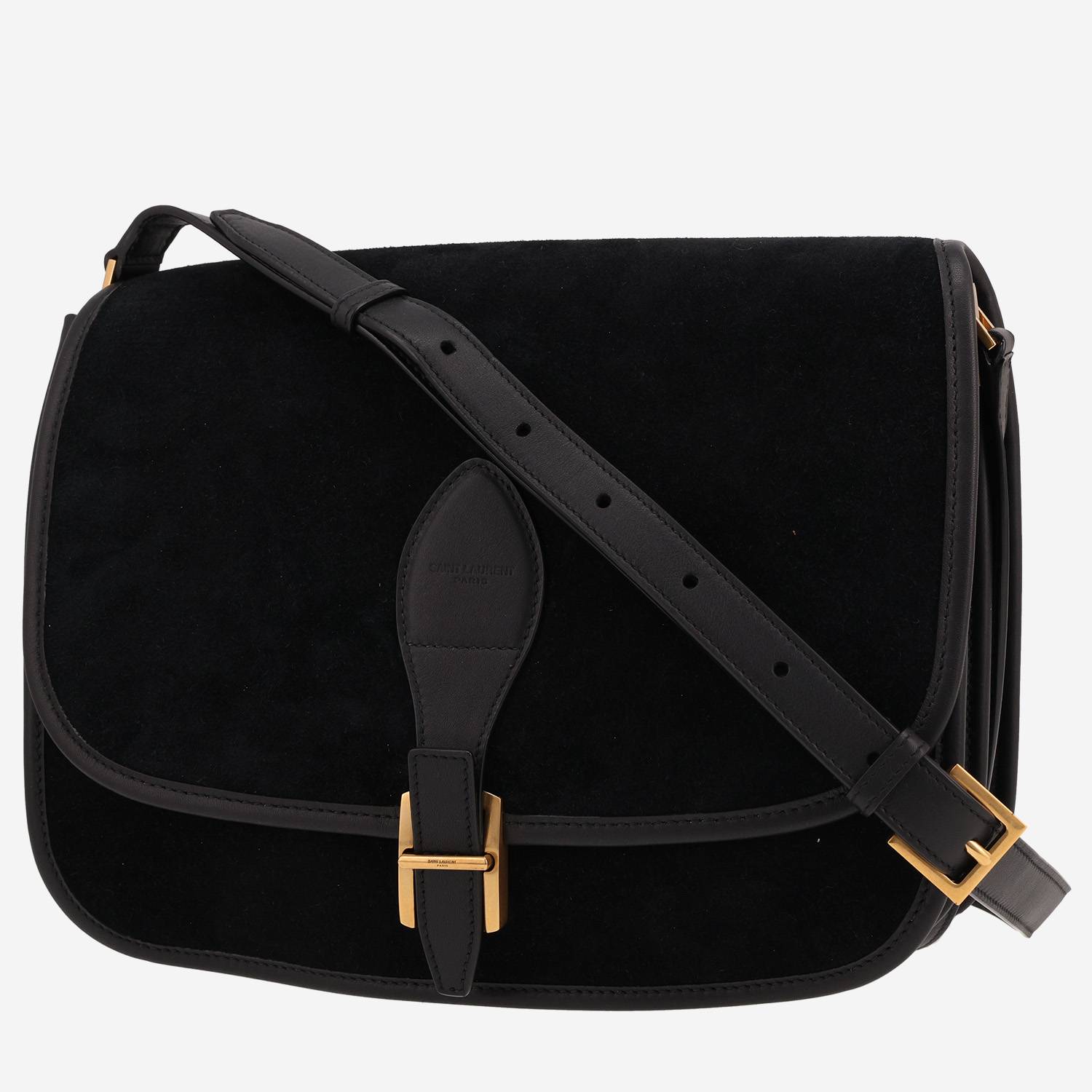 Magnifica borsa a tracolla Saint Laurent in pelle di vitello doblis nero e pelle nera, inserti in metallo dorato, una tracolla regolabile in pelle nera da portare a mano, in spalla o a tracolla.