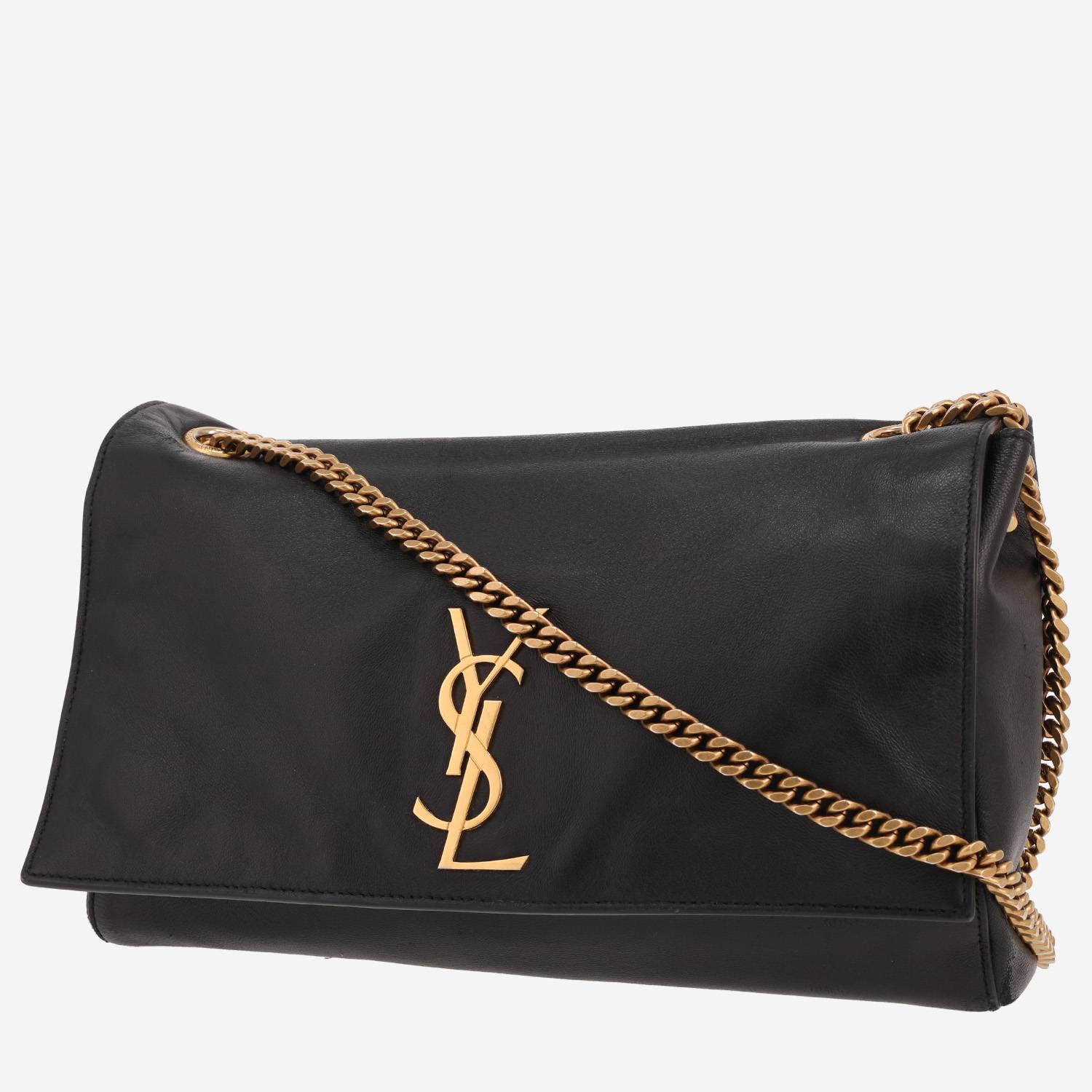 Pratica borsa a tracolla Saint Laurent Jamie in pelle nero, inserti in metallo dorato, una tracolla a catena in metallo dorato da portare a mano, in spalla o a tracolla.