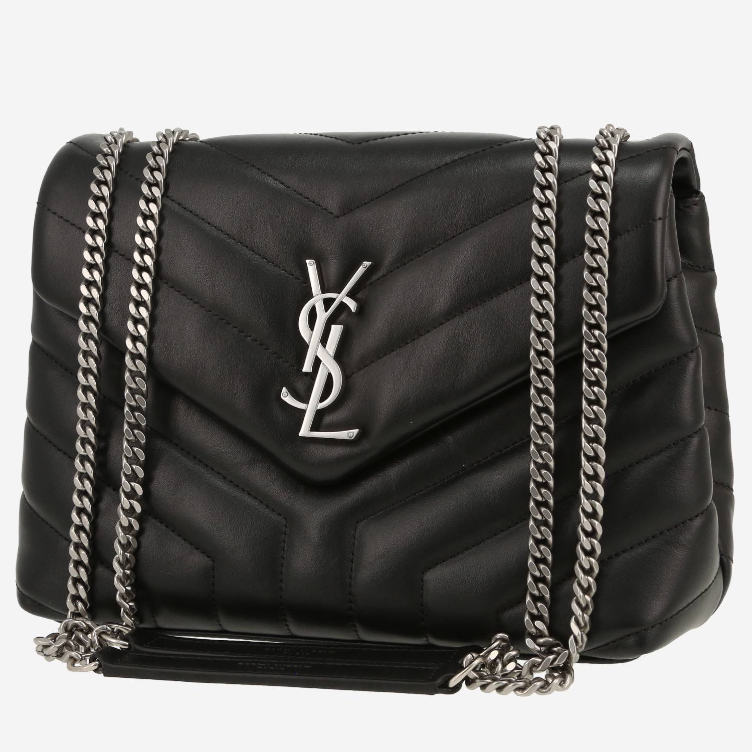 Magnifica borsa a tracolla Saint Laurent Loulou modello piccolo in pelle trapuntata a zigzag nero, inserti in metallo argentato, doppia tracolla a catena trasformabile in metallo argentato da portare in spalla o a tracolla.