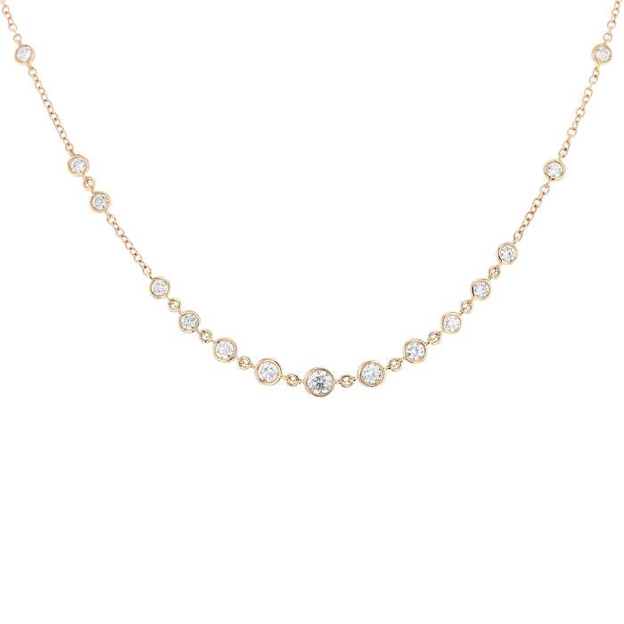 Collana in oro rosa e diamanti, composto da una sottile catena in oro rosa, arricchita di in diamanti con taglio a brillante totale 1.55 carati.