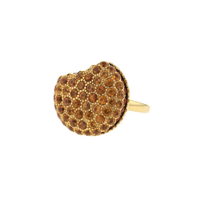 Splendido anello della collezione "Tentation Macaron" in oro giallo, zaffiri gialli e zaffiri arancioni, con un raffinato macaron in zaffiri gialli, zaffiri arancione.