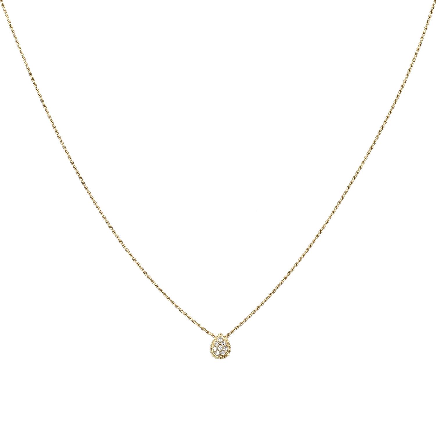 Collana Boucheron Serpent Bohème modello XS in oro giallo, e diamanti, composta da un motivo piriformi testurizzato in oro giallo delicatamente incastonato di diamanti, arricchita da una raffinata catena intrecciata.
