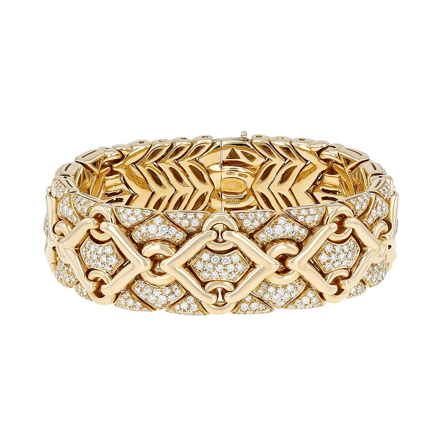 Bracciale Bulgari in oro giallo e diamanti, composto di maglie geometriche delicatamente incastonate di diamanti con taglio a brillante 3 carati di circa.