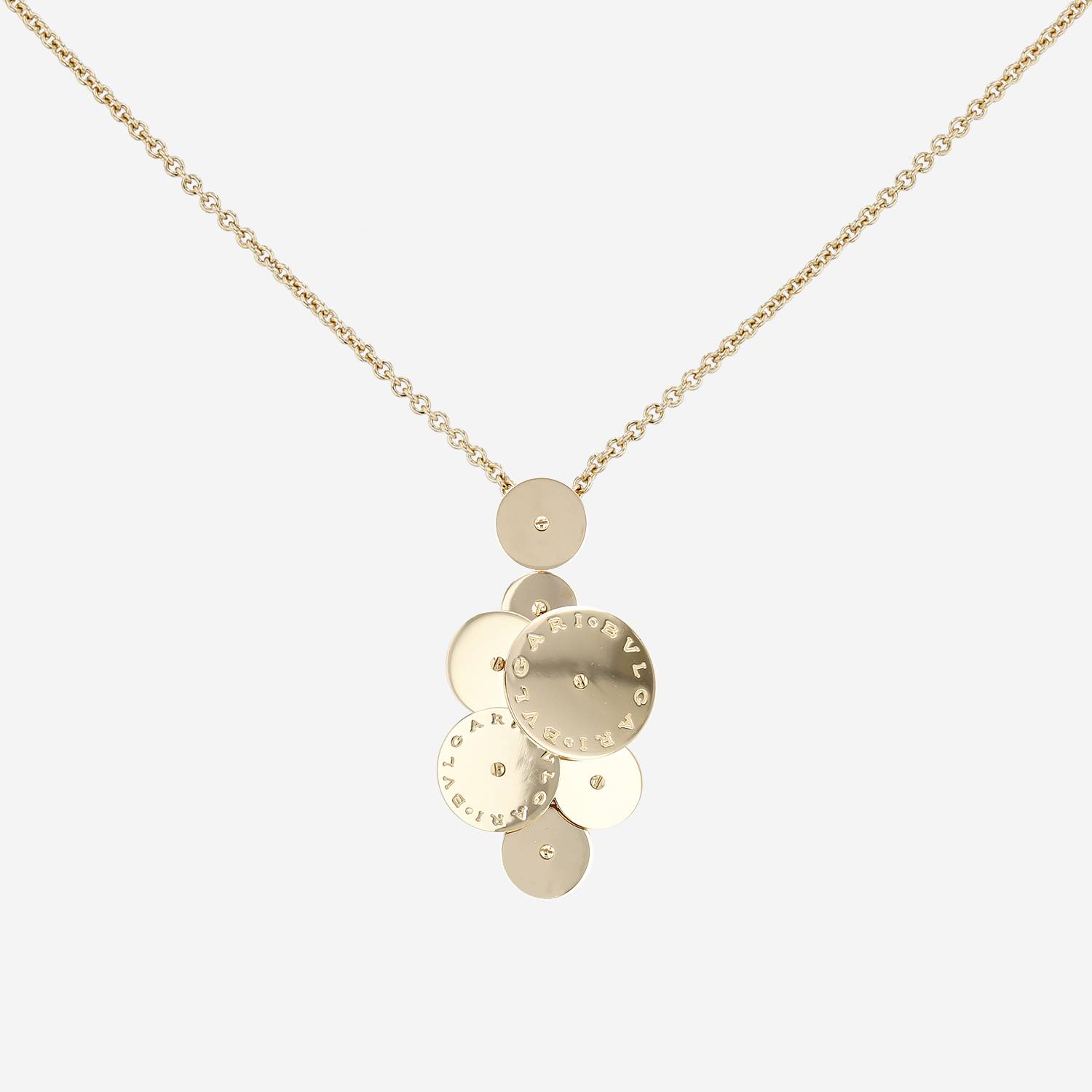 Ciondolo Bulgari Cyclades in oro giallo, composto da una sovrapposizione di bellissimi dischi girevoli in oro giallo, ornato da una elegante incisione, il tutto sostenuto da una bella catena in oro giallo.