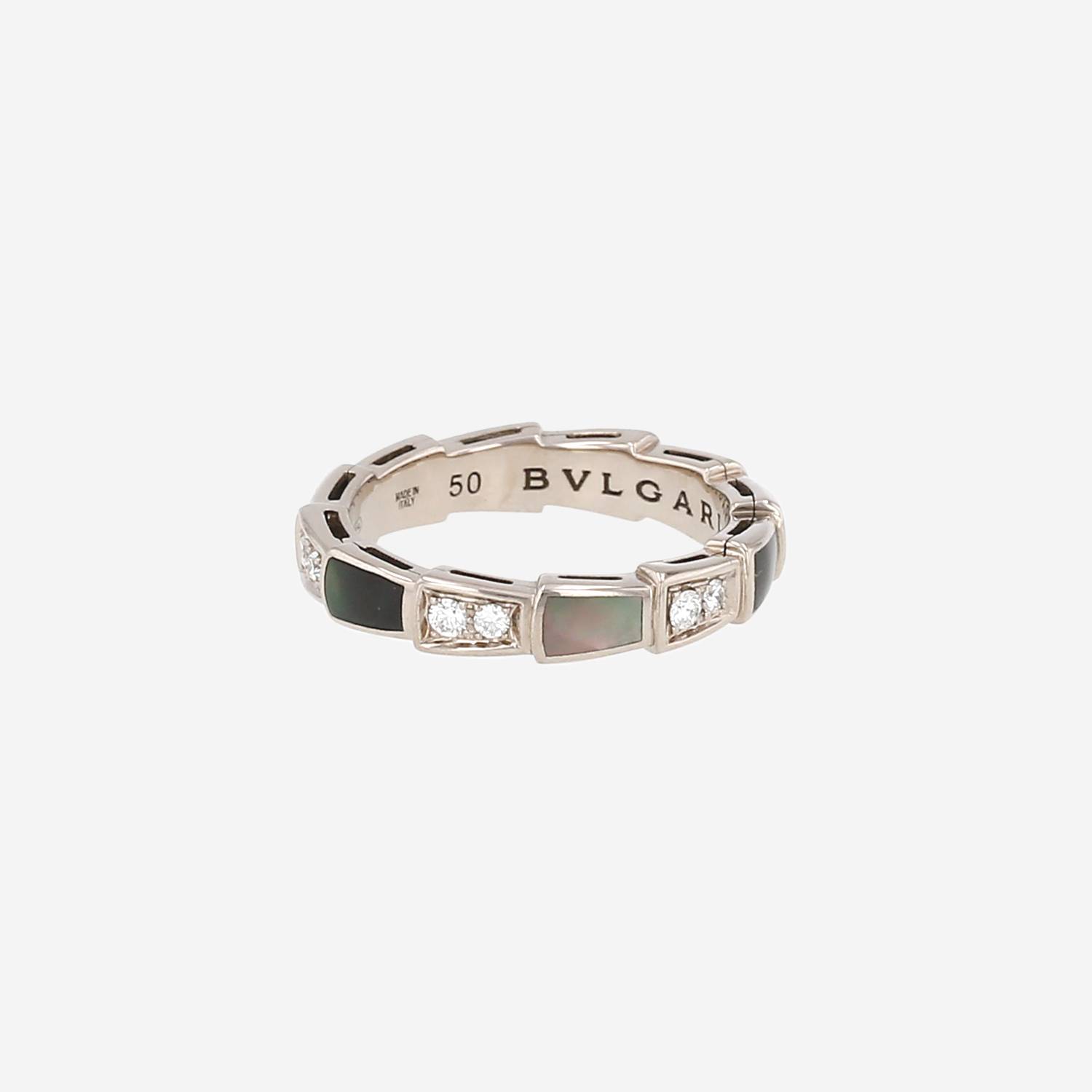 Anello Bulgari Serpenti Viper in oro bianco, diamanti e madreperla Ref Collector Square: 43 15 40