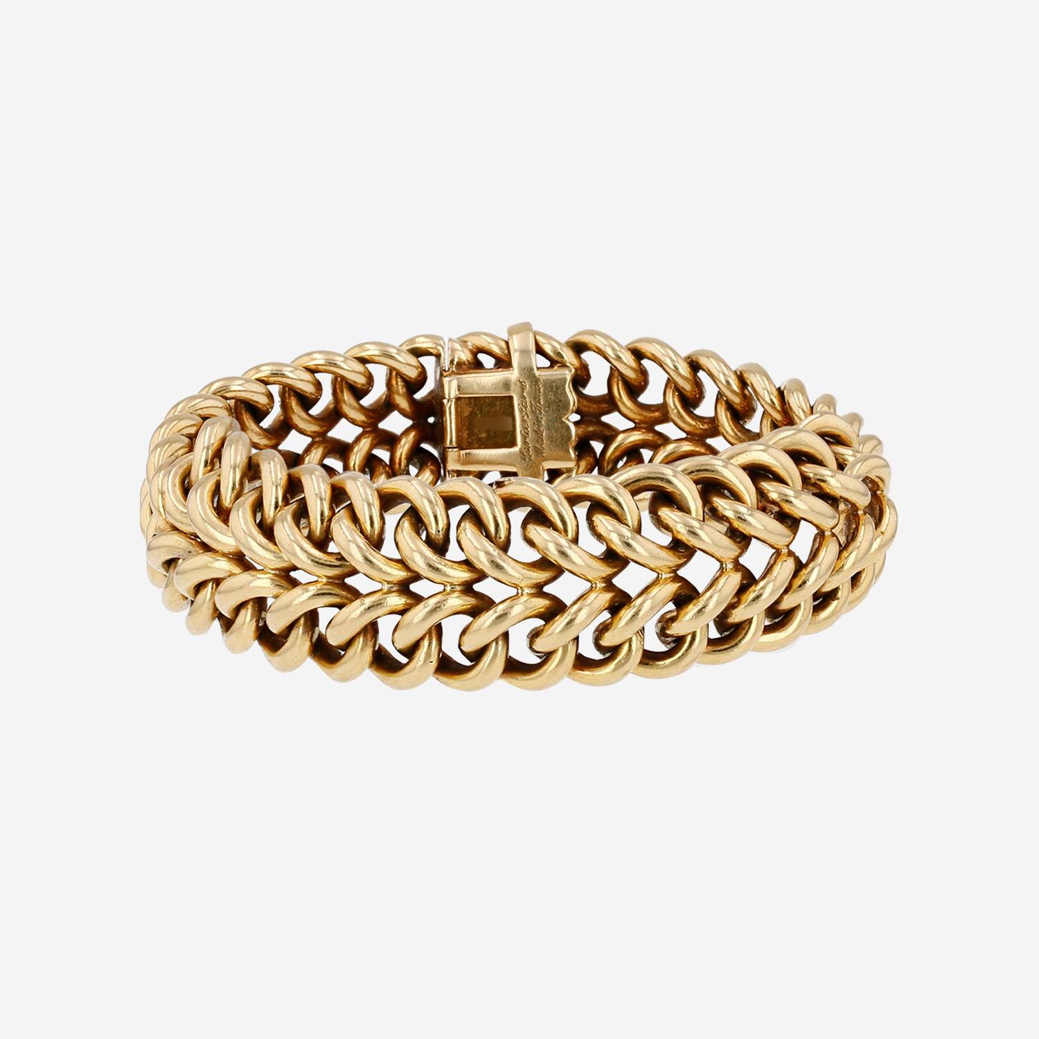 Bracciale Cartier in oro giallo, composto da una elegante maglia grumetta in 2 file liscia in oro giallo.
