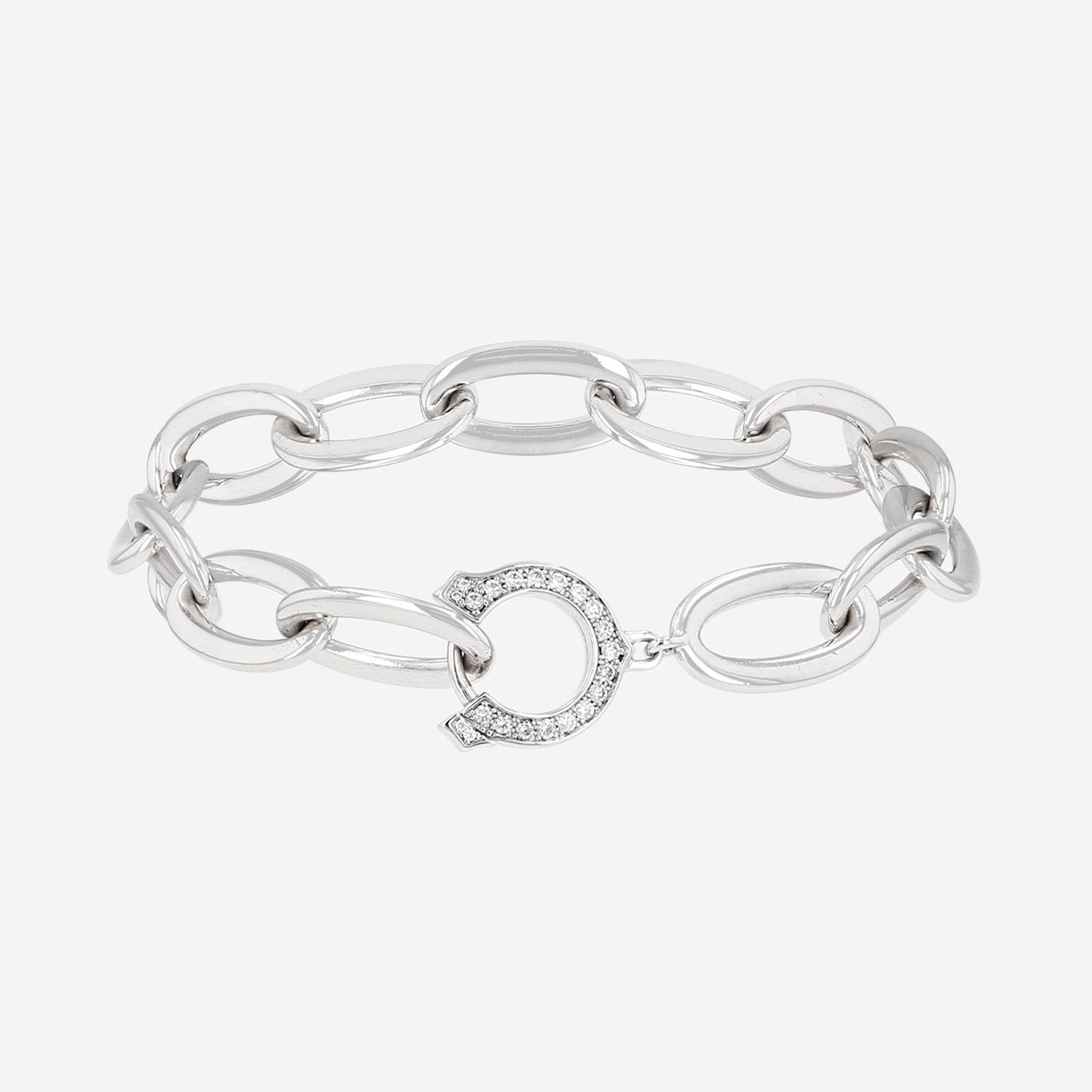 Bracciale Cartier C de Cartier in oro bianco e diamanti, composto da una successione di importanti maglie ovali in oro bianco, arricchito della C delicatamente incastonata di diamanti con taglio a brillante di circa 0,20 carati.