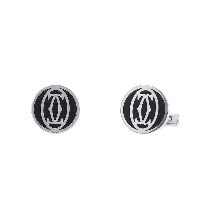 Elegante coppia di gemelli mobile Cartier C de Cartier in argento e smalto nero, composta di 2 importanti motivi rotondi in smalto nero, ornata della intramontabile doppia C Cartier.
