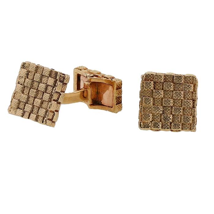 Coppia di gemelli Cartier in oro giallo, composta di motivi quadrati testurizzati in oro giallo.