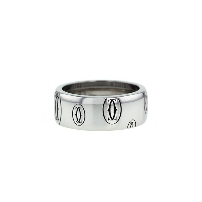 Bellissimo anello della collezione "Happy Birthday" modello grande in oro bianco, composto da una elegante fascia bombata, arricchito della intramontabile doppia C Cartier incisa.