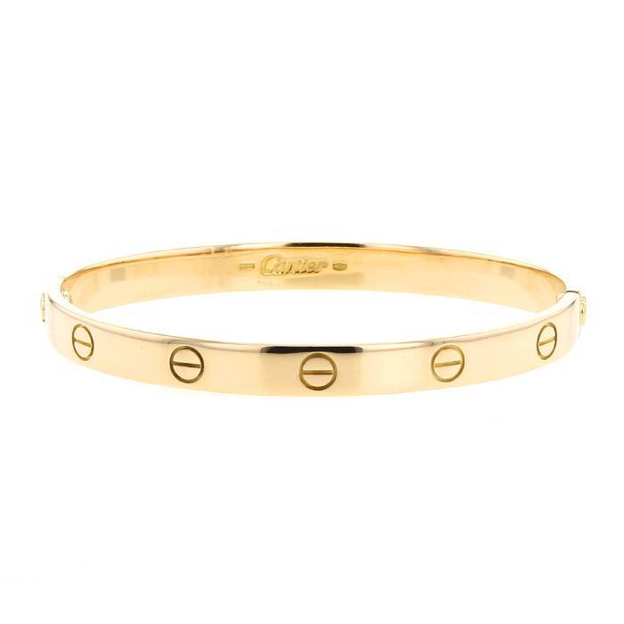 Splendido bracciale Cartier Love in oro giallo, composto da una elegante fascia liscia, ornato da 10 motivi a vite incisi.