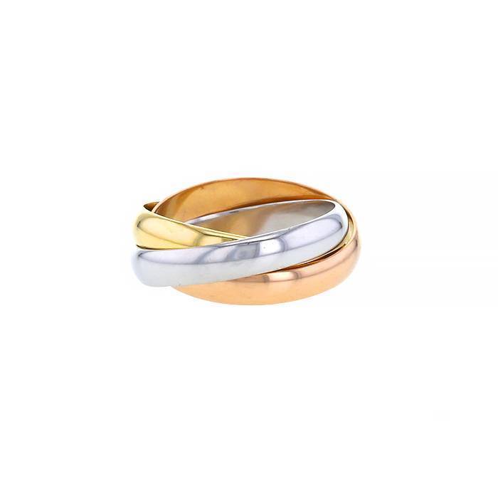 Intramontabile anello Cartier Trinity "les Must de Cartier" modello medio in 3 ori, composto di 3 eleganti montature intrecciate in oro giallo, in oro rosa e oro bianco.