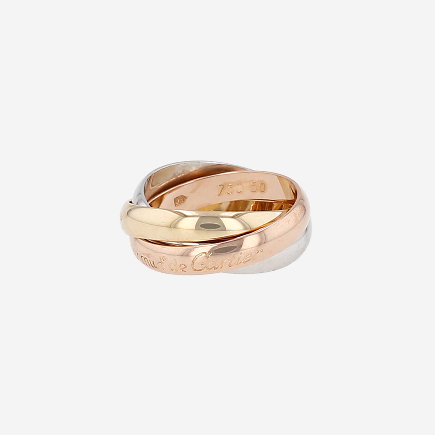 Intramontabile anello Cartier Trinity "les Must de Cartier" modello medio in 3 ori, composto di 3 eleganti montature intrecciate in oro giallo, in oro rosa e oro bianco.