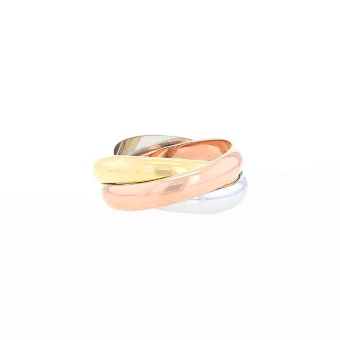 Bellissimo e intramontabile anello Cartier Trinity modello medio in 3 ori, composto da 3 eleganti montature bombate intrecciate in oro giallo, oro rosa e oro bianco.