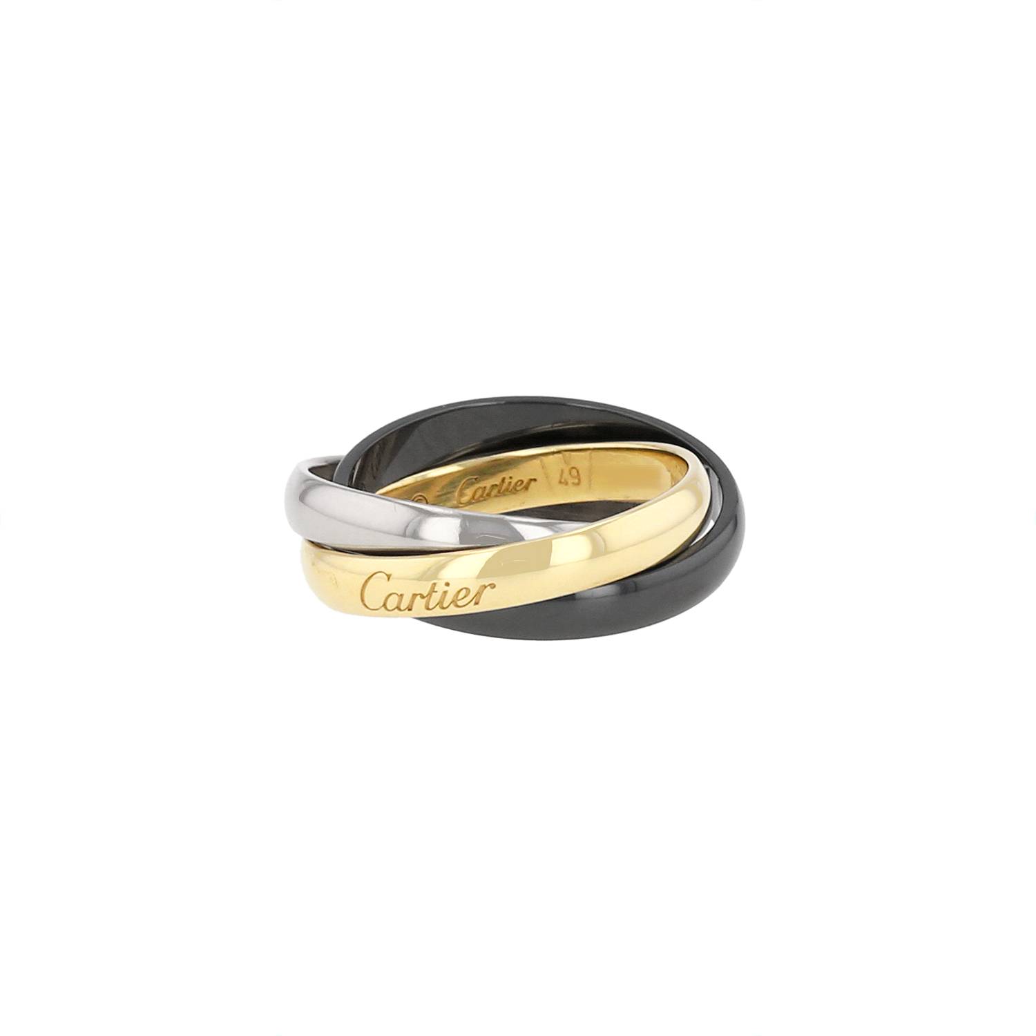 Anello Cartier Trinity modello medio in oro giallo, oro bianco e ceramica nero Ref Collector Square: 41 04 75