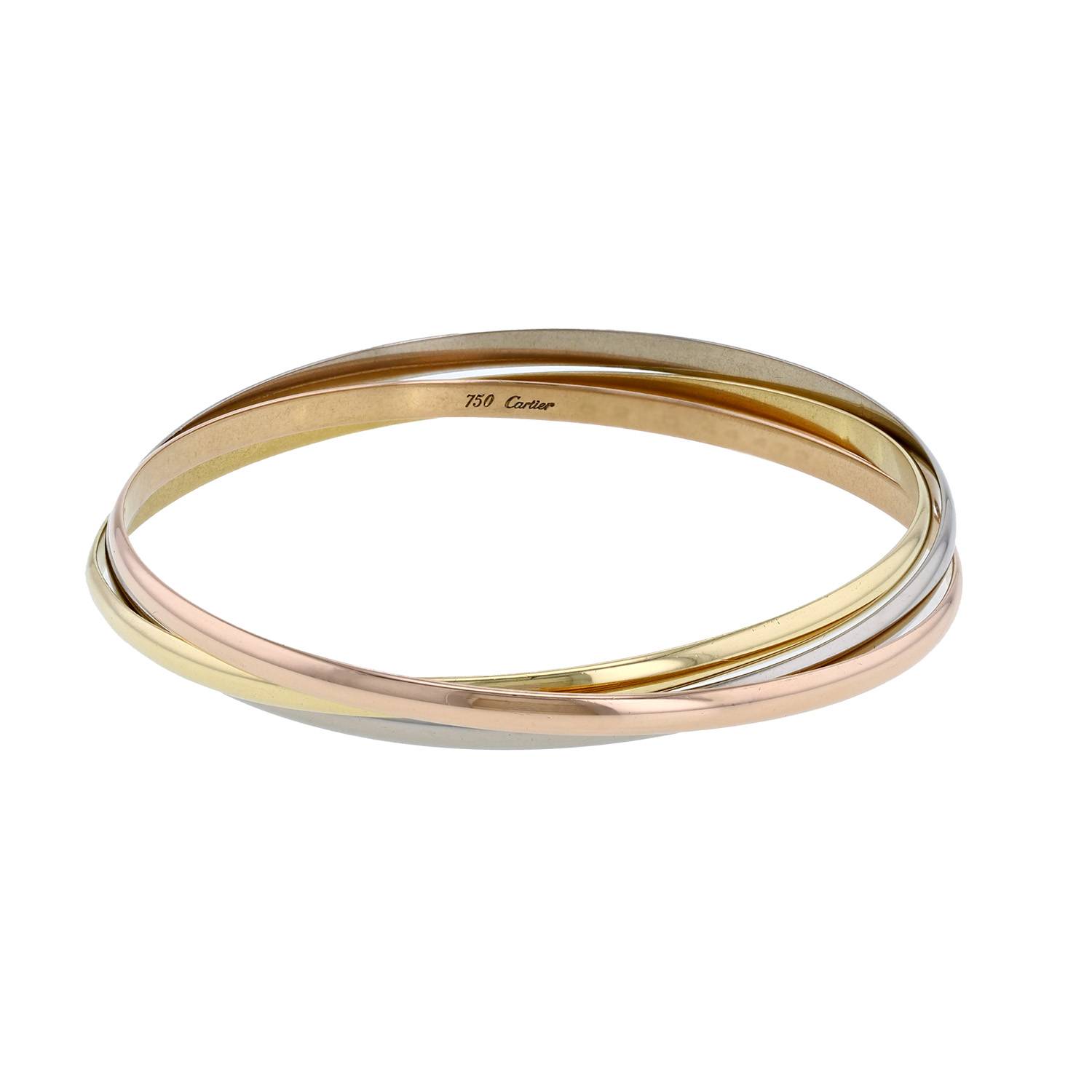 Intramontabile bracciale Cartier Trinity modello piccolo in 3 ori, composto da una successione di 3 eleganti montature intrecciate in oro giallo, in oro rosa e oro bianco.
