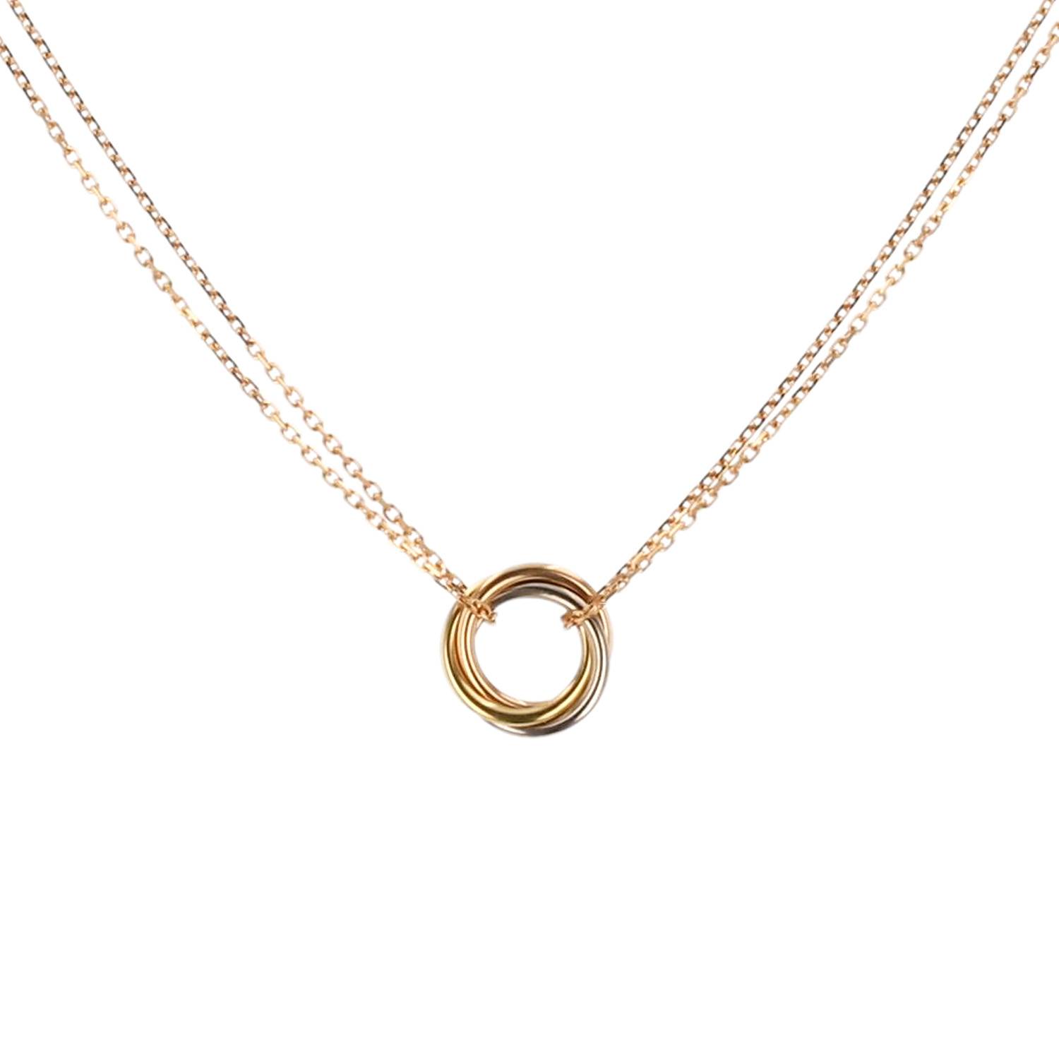 Collana Cartier Trinity in oro giallo, in oro rosa, e oro bianco, composta di 3 eleganti montature intrecciate in oro giallo, in oro rosa e oro bianco, arricchita da una raffinata catena a maglia forzatina in oro rosa.