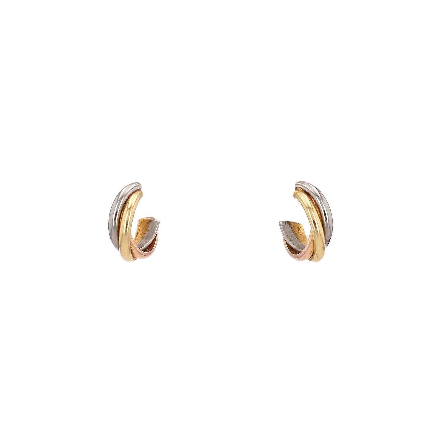 Intramontabile orecchini a cerchio Cartier Trinity in 3 ori, composti da una successione di 3 eleganti montature intrecciate in oro giallo, in oro rosa e oro bianco.