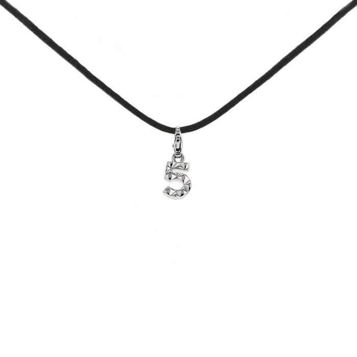 Incantevole ciondolo Chanel in oro bianco, composto da undefined 5 in oro bianco, arricchito sulla parte superiore da una raffinata anello di sospensione in oro bianco.