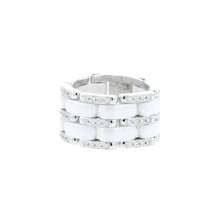 Anello flessibile Chanel Ultra modello grande in oro bianco, ceramica bianco e diamanti Ref Collector Square: 39 40 94