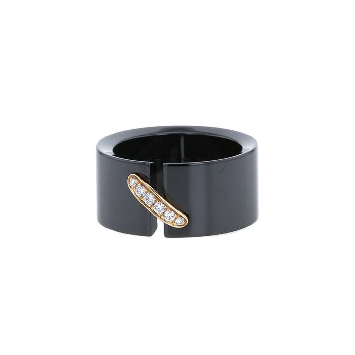 Anello Chaumet Lien modello medio in oro giallo, diamanti e ceramica nera Ref Collector Square: 36 37 83
