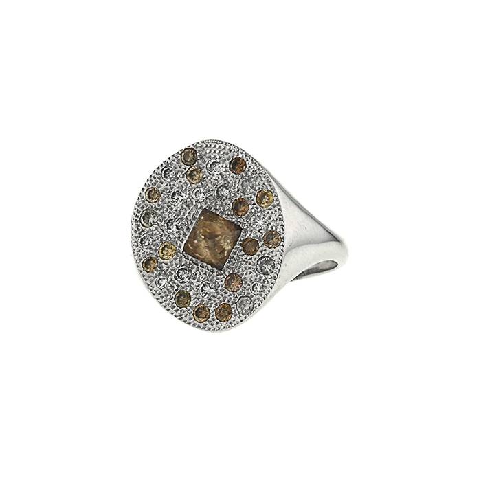 Anello De Beers Talisman in oro bianco, diamanti e diamanti brown Ref Collector Square: 33 92 83