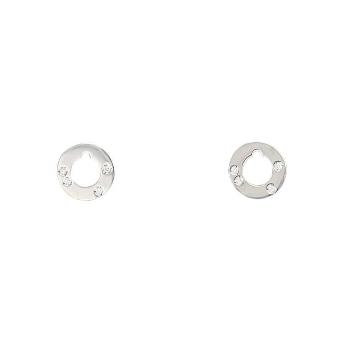 Incantevoli orecchini a bottone della collezione "Cible" in oro bianco e diamanti, dotati di un elegante disco traforato delicatamente incastonato di diamanti con taglio a brillante.