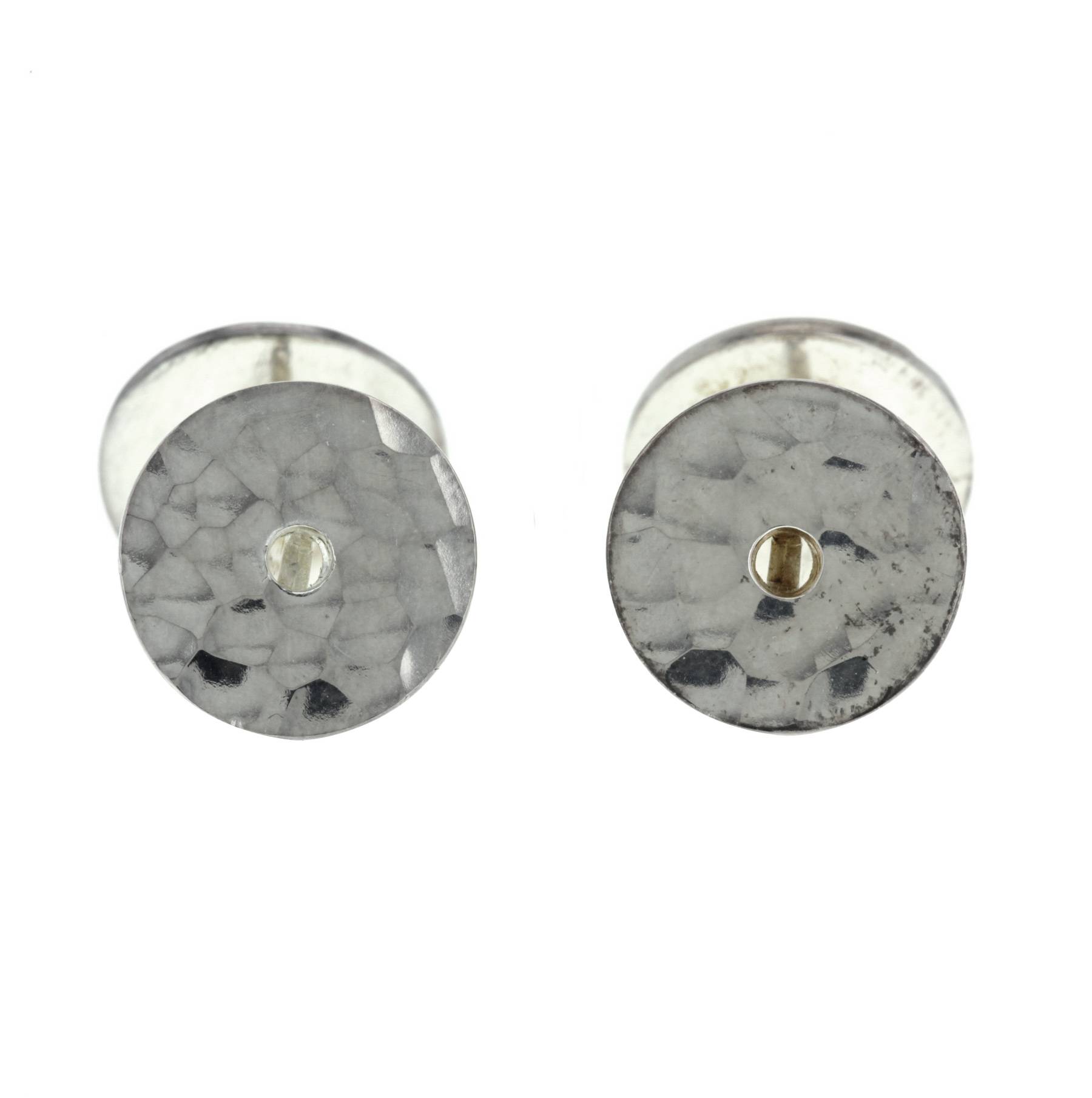 Elegante coppia di gemelli della collezione "Pi Chinois" in argento battuto, composta di 2 bellissimi dischi rotonde traforate.