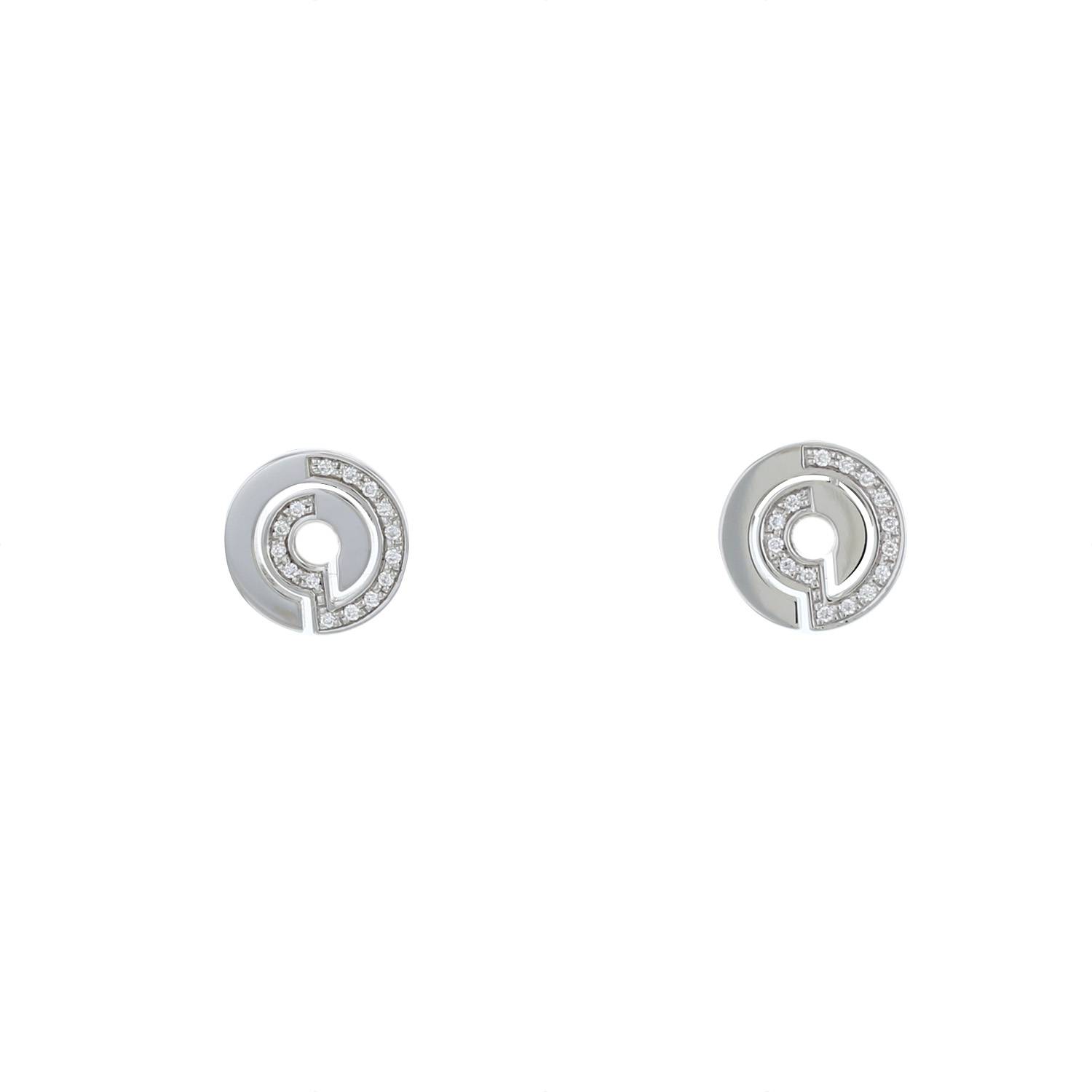 Orecchini a bottone Dinh Van Seventies in oro bianco e diamanti, composti da un motivo traforato in oro bianco parzialmente incastonato di diamanti con taglio a brillante.