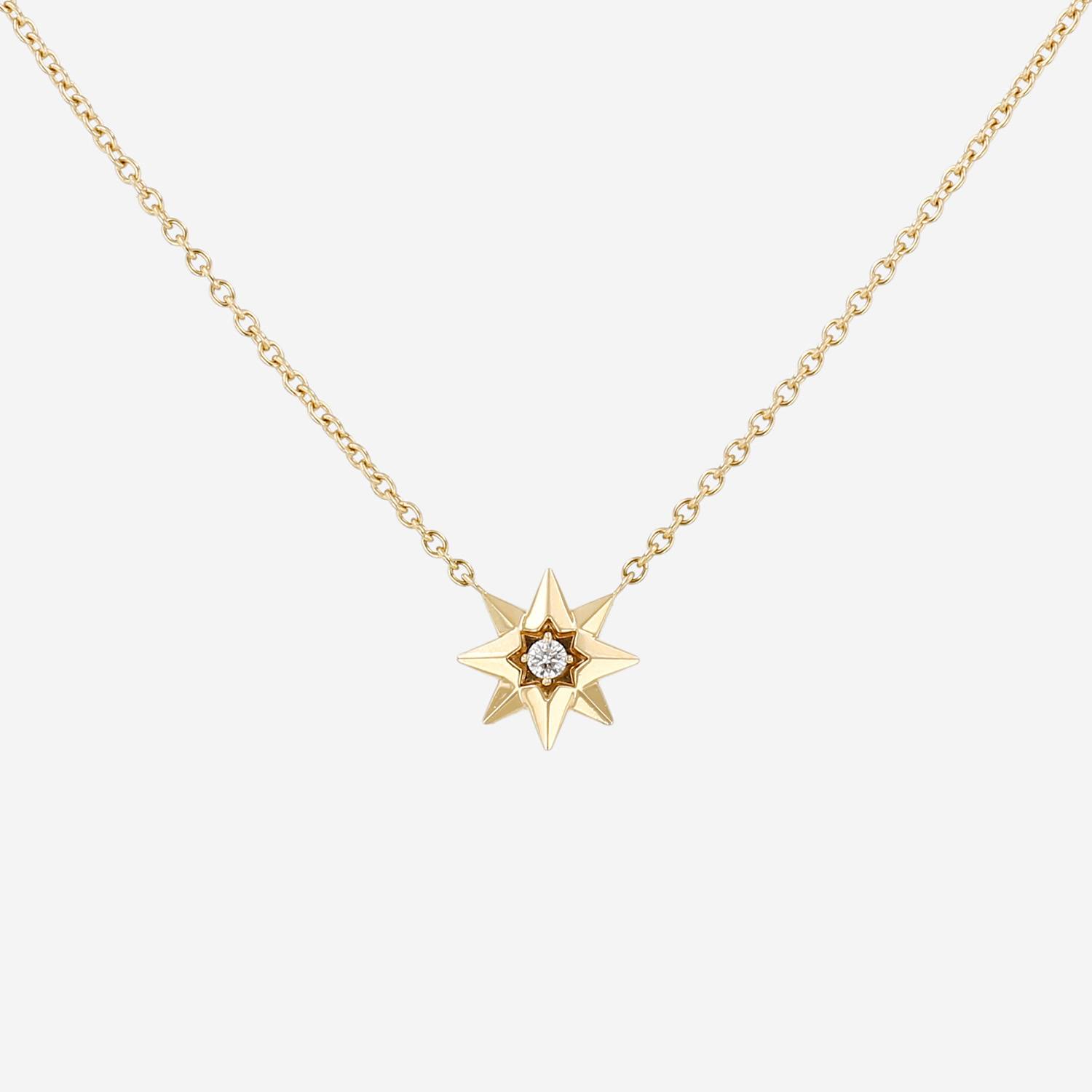 Collana Dior Étoile des Vents in oro rosa e diamante, dotata di una elegantissima stella geometrica in oro rosa, che sostengono al centro un raffinato diamante con taglio a brillante del peso totale 0.04 carati, il tutto sostenuto da una catena in oro rosa.