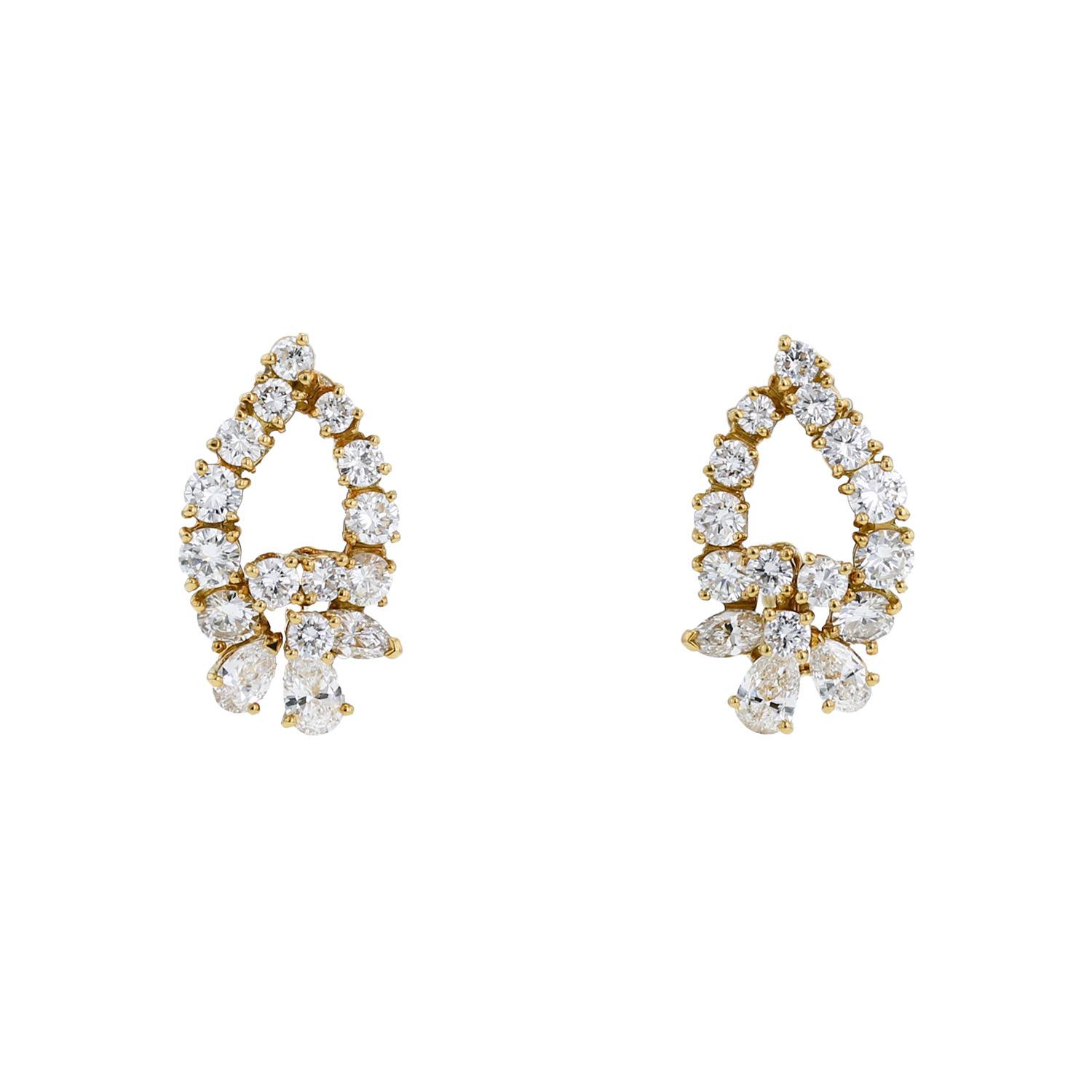 Orecchini Fred in oro giallo e diamanti, composti di belli motivi traforate in oro giallo elegantemente incastonati di diamanti con taglio a brillante 2,20 carati di circa.
