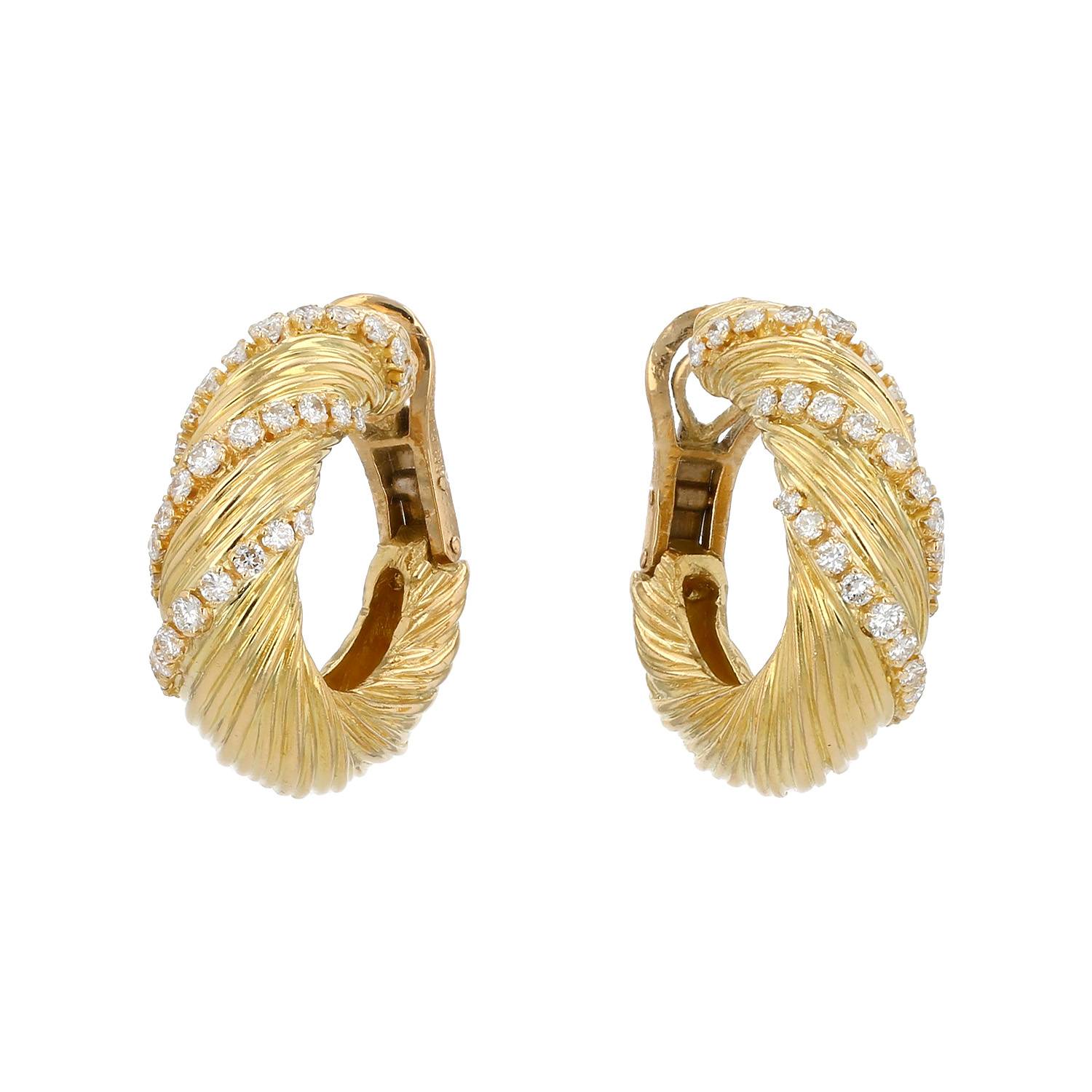 Orecchini Fred in oro giallo e diamanti, composti da importanti montature intrecciate delicatamente incastonate di diamanti con taglio a brillante 0.85 carati di circa.