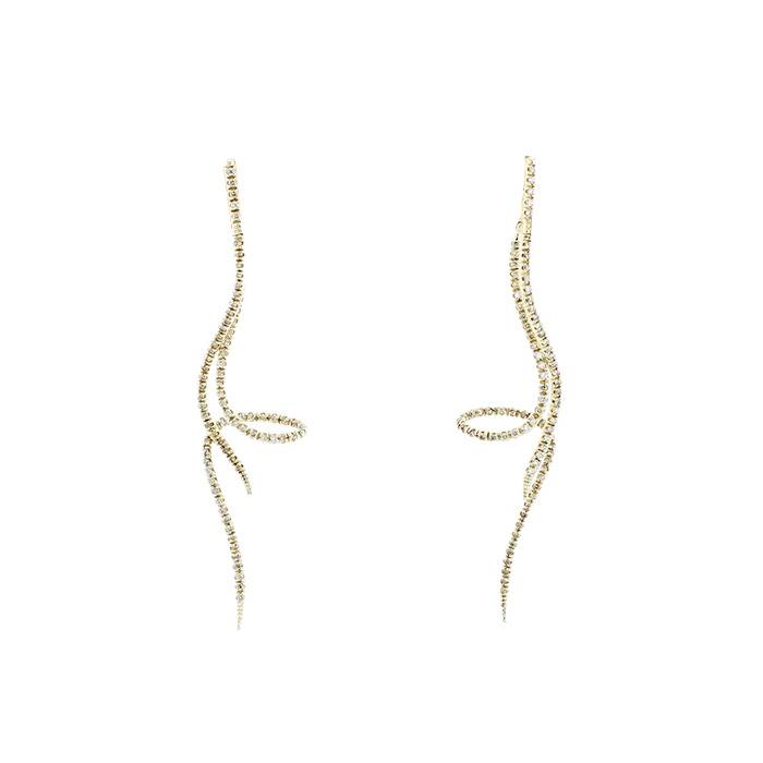 Orecchini pendenti H. Stern in oro giallo e diamanti brown, composti da una fila di diamanti rigida ondulata con taglio a brillante, arricchiti da una fila di diamanti mobile.